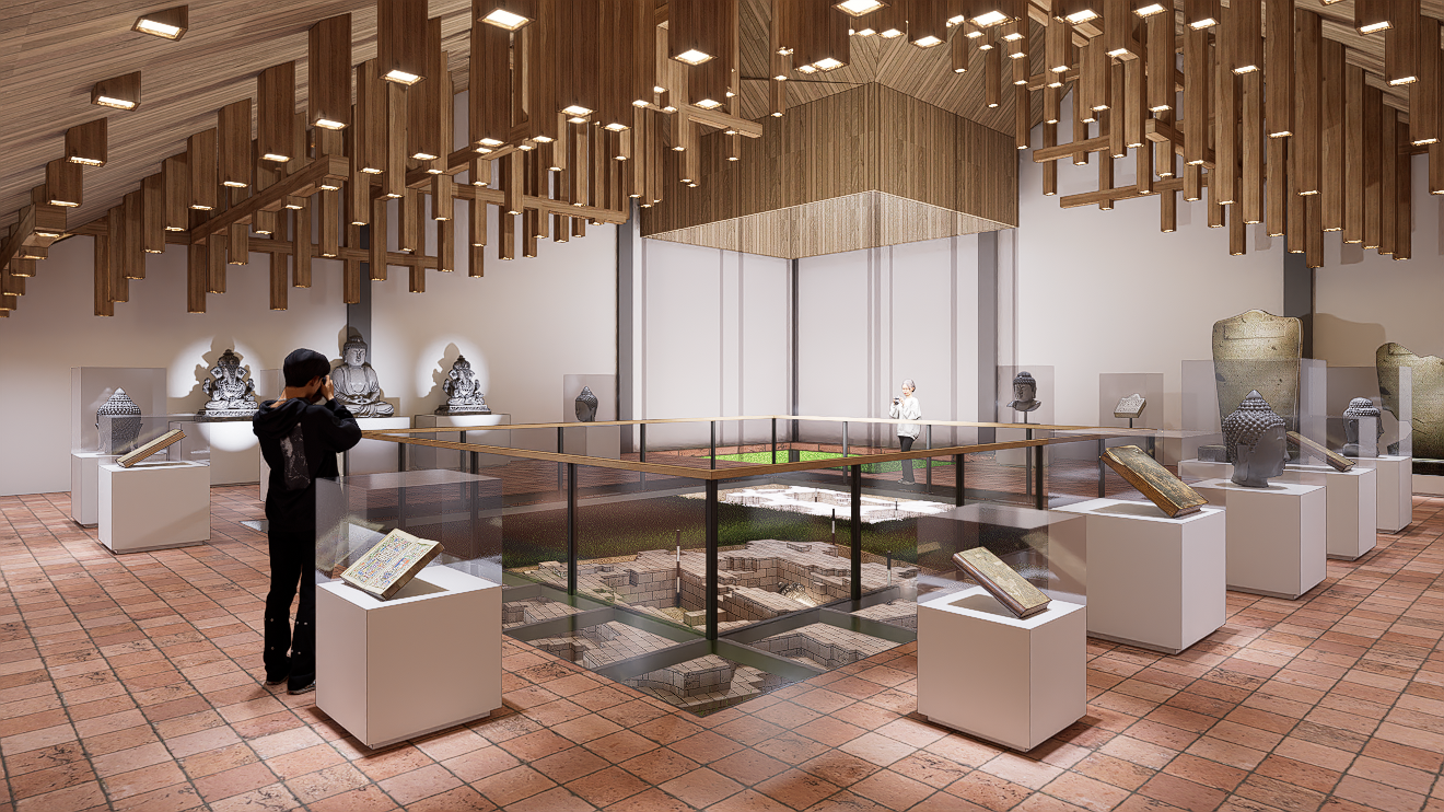 Masterplan ini dirancang berdasarkan konsep Surya Majapahit dengan delapan sumbu utama yang merepresentasikan arah mata angin. Setiap sumbu berfungsi sebagai elemen pengarah ruang sekaligus simbol keseimbangan dan tatanan kosmis. Pendekatan ini menghadirkan keterpaduan antara nilai simbolik dan fungsi perancangan, sehingga sejarah Majapahit dapat terintegrasi dengan kebutuhan ruang masa kini. Alur perancangan disusun menggunakan konsep Kronologi Terbalik, yang dimulai dari fase akhir runtuhnya peradaban Majapahit, kemudian bergerak mundur menelusuri jejak-jejak sejarah melalui peninggalan dan narasi masyarakat. Perjalanan ruang ini mencapai puncaknya pada representasi masa kejayaan Majapahit, saat kerajaan tersebut menjadi pusat politik, budaya, dan peradaban di Nusantara.